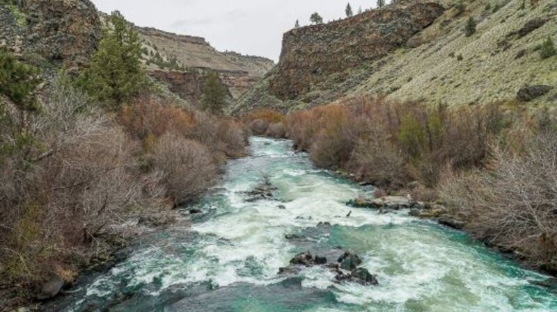 Hikers can enjoy the shade from the many trees and the water bubbling up from rocks at Alder Springs, eventually flowing into Whychus Creek. Or they can continue down Whychus Creek another 1.5 miles to the confluence of the creek with the Deschutes River. This section of the hike has far more vegetation which creates more shade, but also more obstacles to push aside, walk around or over. Close to the confluence is a stone cliff from which a spring flows creating a lovely waterfall. Access to this involves stepping around shrubs and trees to see it and as the vegetation grows later in the spring, many hikers will probably miss the waterfall as it will be hidden from the path. At the confluence, a large rock formation provides the perfect space for lunch and enjoyment of the flowing water and towering rock formations.
