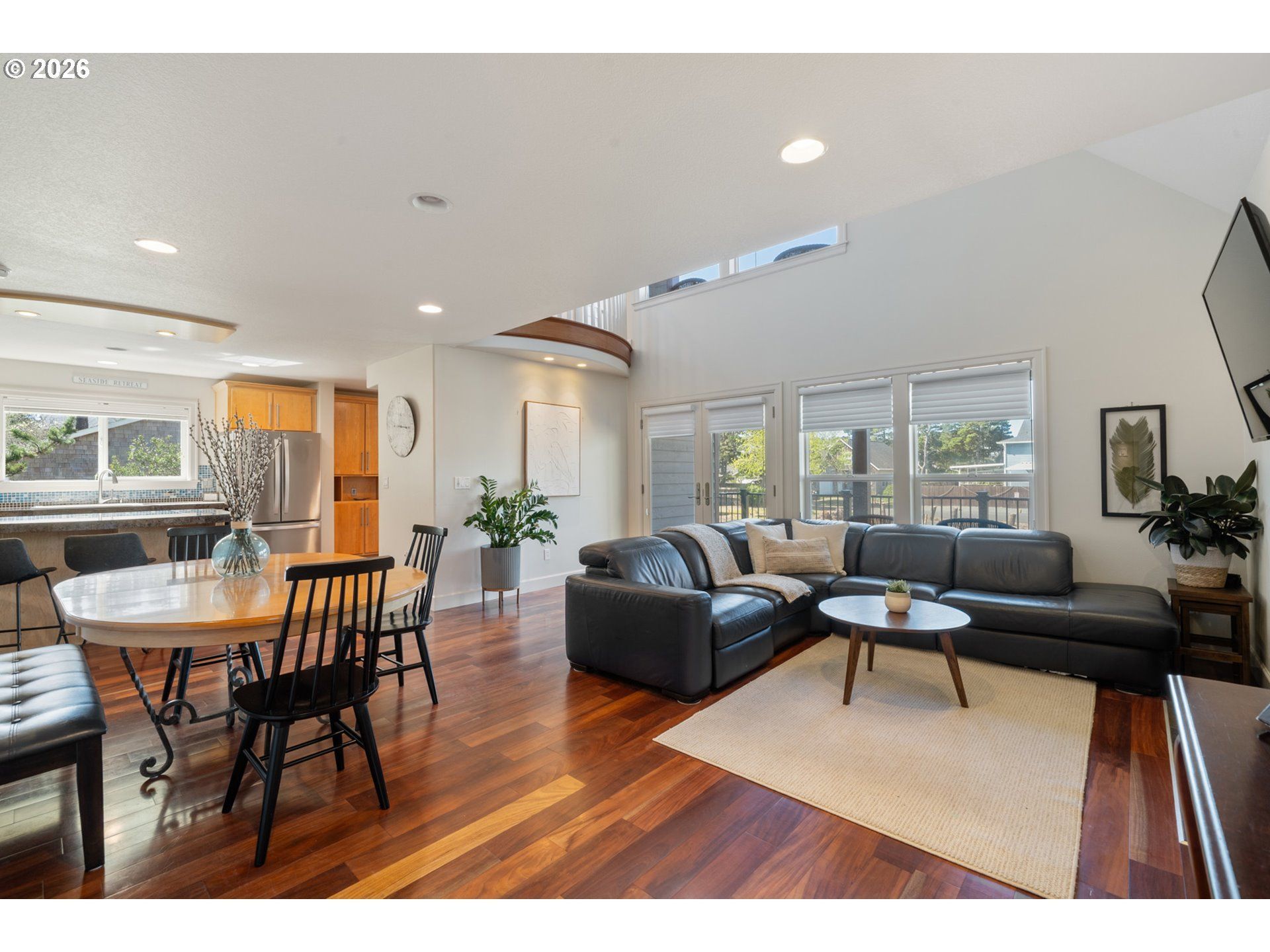 Income-ready and exceptionally located, this custom-built 4-bedroom, 4-bathroom coastal home located outside the FEMA-designated flood zone-a rare and highly desirable coastal advantage-offered with a transferable short-term rental permit for immediate income potential and partially furnished for a seamless transition. Ideally positioned just one block from the beach and bordering the coveted Pine Beach Loop neighborhood, the property includes deeded access to a beautifully maintained private beach trail, all without HOA dues or restrictions.From the moment you enter, the home opens dramatically with a stunning wall of clerestory windows in the living room, filling the space with natural light and capturing the coastal atmosphere. Warm cherry hardwood floors, a welcoming propane fireplace, and generous living spaces create a warm yet expansive main gathering area.The kitchen blends craftsmanship and function with custom maple cabinetry, granite surfaces, quality appliances, a propane cooktop, and a secondary prep/cleaning station-ideal for coastal living and entertaining.The main-level primary suite offers a peaceful retreat with a spacious en suite bath featuring a walk-in shower and oversized jetted tub. Upstairs, additional bedrooms, two full bathrooms, and a flexible sitting area open to covered decks and outdoor living spaces. At the top, a private crow's nest bedroom captures ocean views and provides a quiet, elevated escape.Outdoor living is enhanced by expansive updated composite decking and hot/cold water already in place for a future outdoor shower or hot tub. With central A/C, on-demand hot water, and quality construction throughout, the home balances comfort, durability, and long-term flexibility.A rare North Coast offering combining architectural character, privacy, and strong income potential in one of Rockaway Beach's most desirable coastal settings.