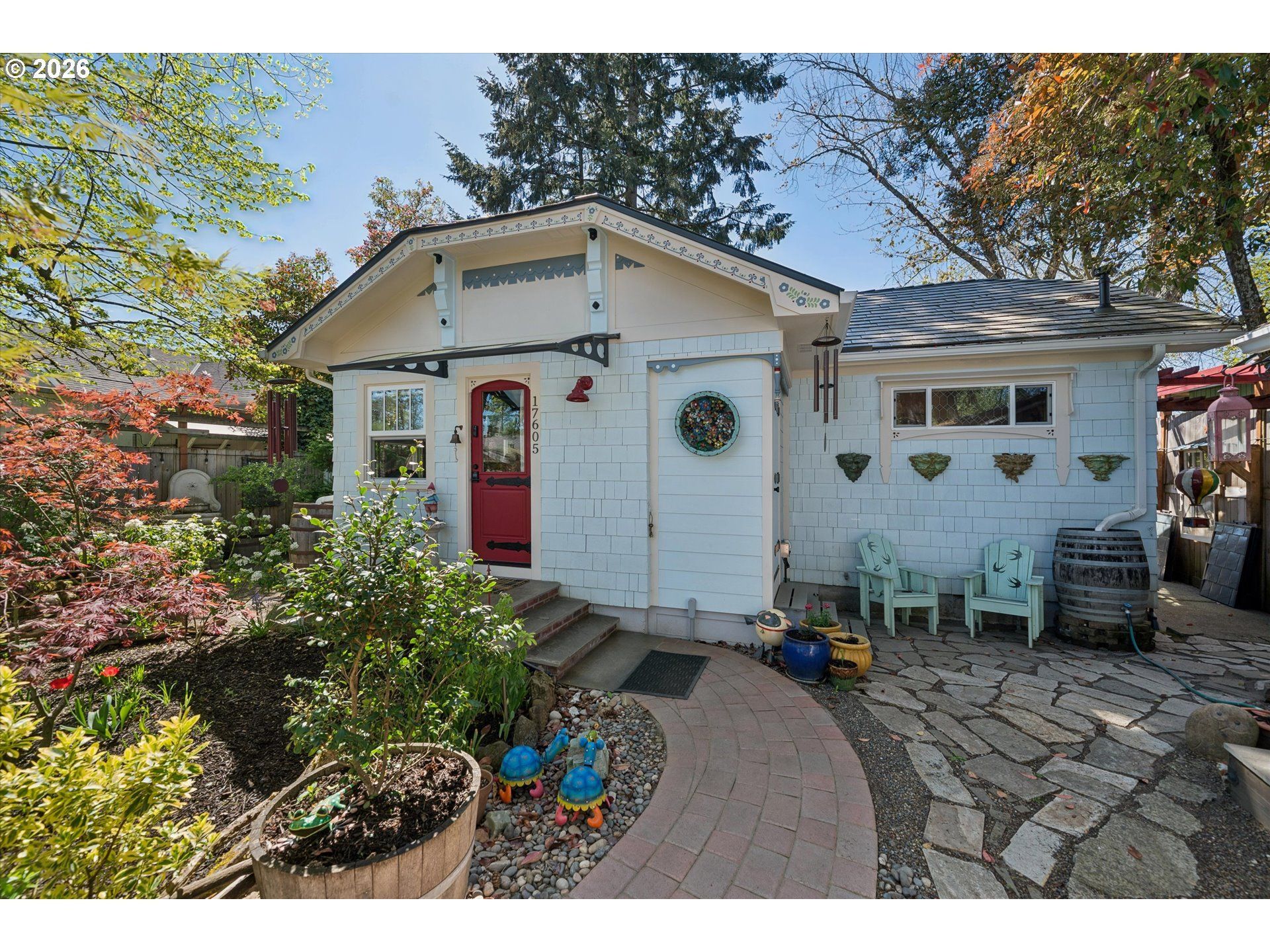 This picturesque cottage is nestled away in its own private oasis. A gardeners dream awaits! The home itself has gone through an extensive remodel. High quality custom craftsmanship, elegant built-ins, quality fixtures, and whimsical details make this home unlike any other. The kitchen has been fully remodeled. With a large eating island, butcher block counter tops, and an ample amount of cabinets. Newer stainless steel appliance, gas range with a hood, like new dishwasher, tile backsplash and custom built-ins. Between the two bedrooms is a tastefully remodeled bathroom with floor to ceiling tile in the walk-in shower. This home also offers a loft. Perfect for a play area, a quiet reading space, or storage. Off the utility room is a newer back deck. In addition to the home there is a separate out-building. Currently being used as an office but would be perfect for a home business. It is fully equipped with electricity and is fully insulated. One of the most spectacular parts of this property is the enclosed and private yard. It's like stepping into a magical garden. With meandering stone pathways, water features, art, sitting areas, and endless flowers and plants. The entire property is fully fenced, completely private, hidden from the road and the neighbors. There is also a large and custom built carport that fits two cars. Already set up with EV hookup and additional storage.