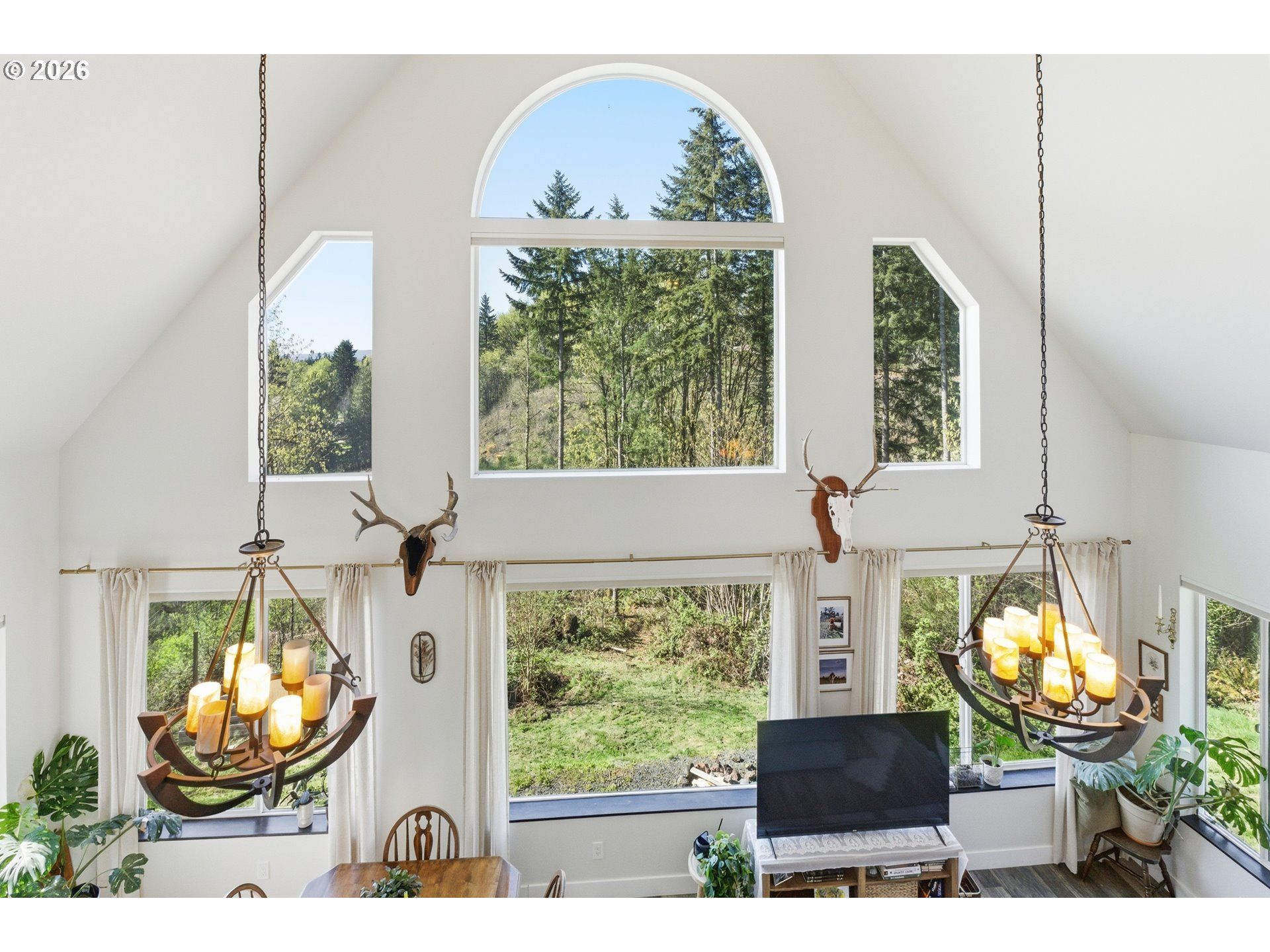 Nestled on just under 4 acres in the heart of the Pacific Northwest, this stunning rural retreat offers the perfect blend of privacy, natural beauty, and modern design. Surrounded by trees and peaceful scenery, the setting feels secluded while still being within a convenient distance to everyday amenities.Inside, you'll find soaring ceilings, elegant modern fixtures, and expansive windows that flood the home with natural light while framing picturesque views of the surrounding landscape. The open-concept layout creates a seamless flow, ideal for both everyday living and entertaining.The main-level primary suite offers comfort and convenience, while two additional bedrooms upstairs feature their own dedicated bathroom, providing separation and flexibility for guests or household members.The oversized garage on the lower level offers incredible versatility-perfect for a shop, storage, or hobby space-with ample room to expand and build a future shop or barn. The property is thoughtfully enhanced with a fenced garden area featuring six 5-foot raised beds, a seasonal creek, and a variety of fruit trees including cherry, apple, and fig. A studio space and newly planted Douglas fir trees add to the property's long-term potential and charm.Whether you're looking for a peaceful escape or a place to create your dream rural lifestyle, this property offers endless possibilities-all within reach of the beauty and tranquility the Pacific Northwest is known for.