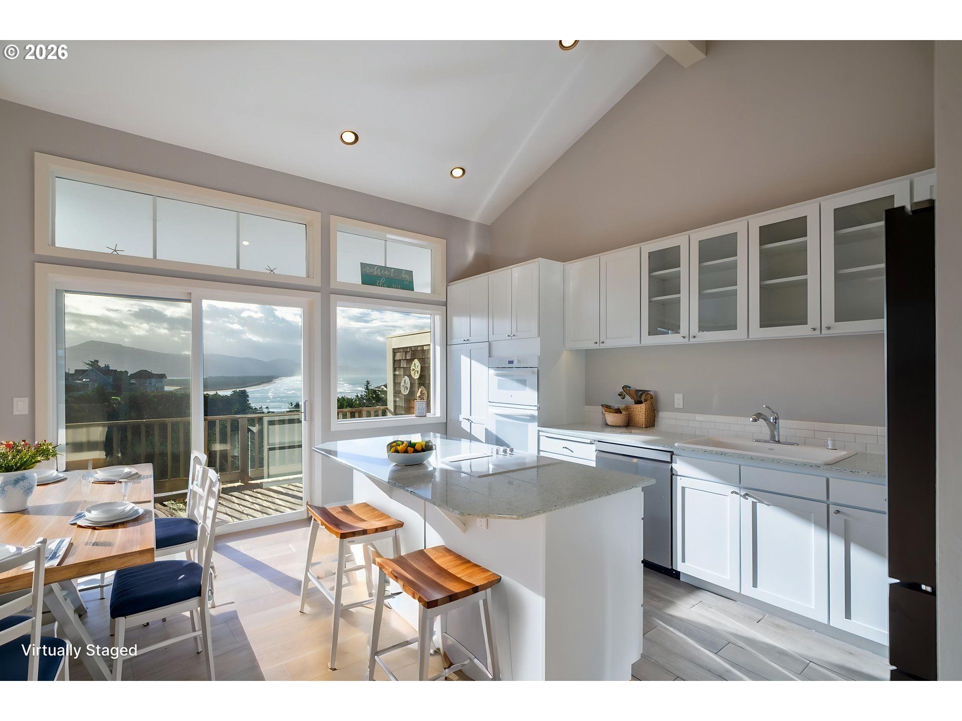HAVE IT ALL... panoramic whitewater ocean view including miles of sandy shoreline, majestic Cape Lookout, Netarts Bay, and the best possible exposure to maximize the sunshine. South exposure assures a sunny deck from the minute the sun rises in the East till it sets gloriously in the West, plus you get the benefit of shelter from the NW breezes prevalent on the Coast during Summer. Best of all worlds. Enjoy romantic nights, too, when the moon makes the whitewater glow. All this from your intimate 2bd 2bth lovenest with warm wood under your feet and crackling wood fireplace enhancing the mood. Immaculate and well-maintained, striking interior remodel, solid surface counters, light & bright open plan with large view deck and fenced front yard. Overlooks greenspace with beach trail.