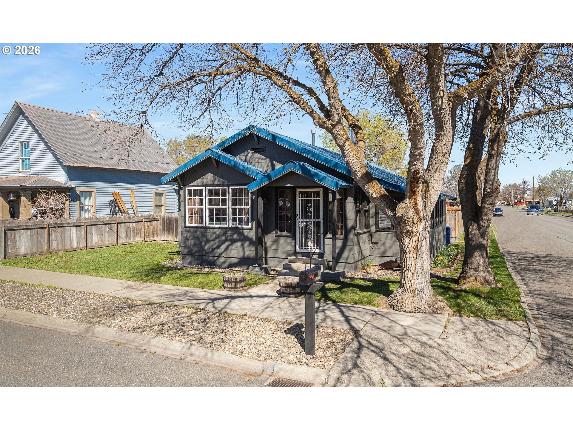 Welcome to your next chapter in the heart of Baker City! This delightful 2-bedroom, 1-bathroom home sits proudly on a generous corner lot, offering the kind of space and versatility that's hard to come by. With a fresh coat of exterior paint and a durable metal roof overhead, this property makes a striking first impression that only gets better as you explore further. Step inside to discover a home that's been thoughtfully updated from top to bottom. Plenty of new windows flood the interior with natural light, creating a warm and inviting atmosphere throughout. A newer wood-burning stove adds rustic charm and cozy warmth during those crisp Eastern Oregon evenings. Venture downstairs to find bonus space in the basement - perfect for a home office, creative studio, or additional storage. The outdoor living is equally impressive. A covered deck in the backyard provides the ideal spot for morning coffee or evening gatherings with friends, all tucked behind a privacy fence that creates your own personal retreat. The large detached garage is a true standout - fully insulated and heated, it's ready to serve as a workshop, hobby space, or comfortable vehicle storage year-round. With updates inside and out, this corner lot gem delivers comfort, functionality, and small-town living at its finest. Don't let this one slip away - schedule your showing today!